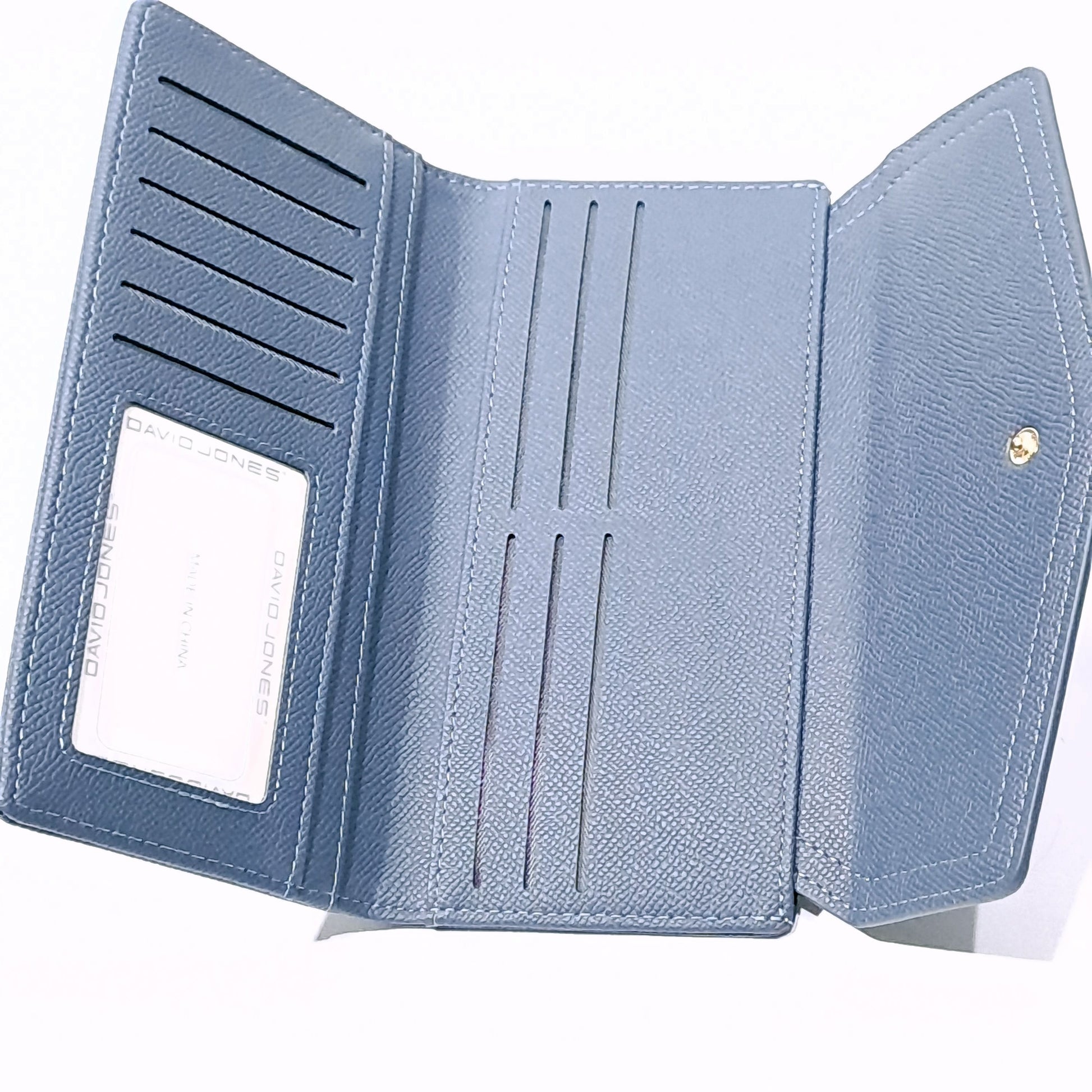 Ce grand portefeuille en 3 battants clipsés offre un nombre considérable de poches et rangements. Il se mariera parfaitement avec les sac David Jones de la même couleur, mais également dans votre propre sac à main.